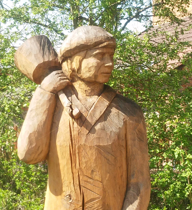 Die Skulptur zeigt einen Gemeindediener mit Glocke, wie man ihn noch weit bis ins letzte Jahrhundert hinein in den Dörfern erleben konnte. Der Gemeindediener war ein haupt- oder nebenberuflicher Beschäftigter einer Stadt oder Gemeinde, dessen Aufgabe die mündliche Verbreitung amtlicher Bekanntmachungen und sonstiger Angelegenheiten in einem Ort war. Da die Gemeindediener häufig eine Glocke mit sich führten, um auf sich aufmerksam zu machen, wurden sie in manchen Gegenden auch Ausrufer oder Ausscheller genannt.