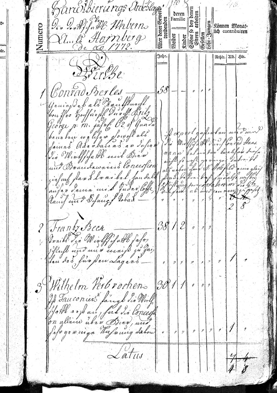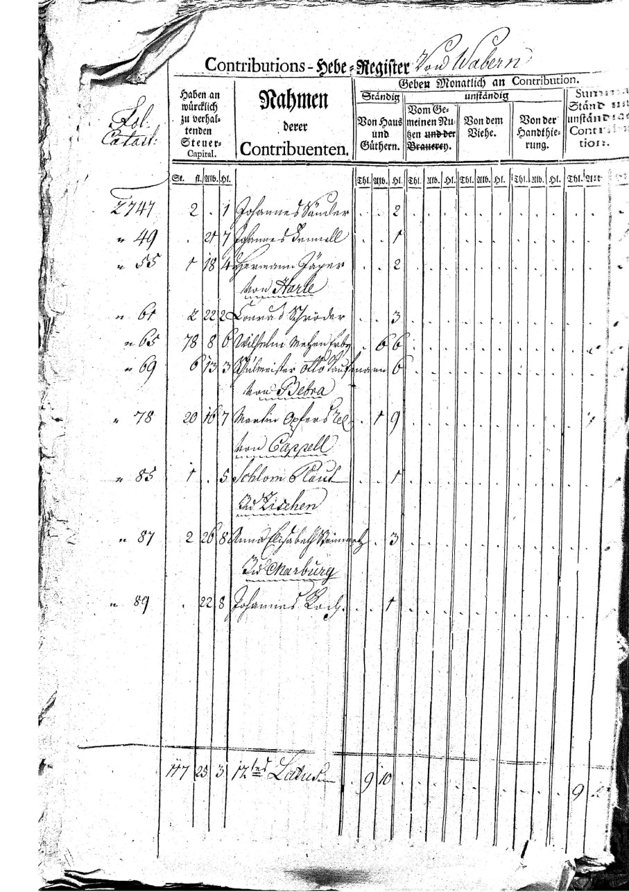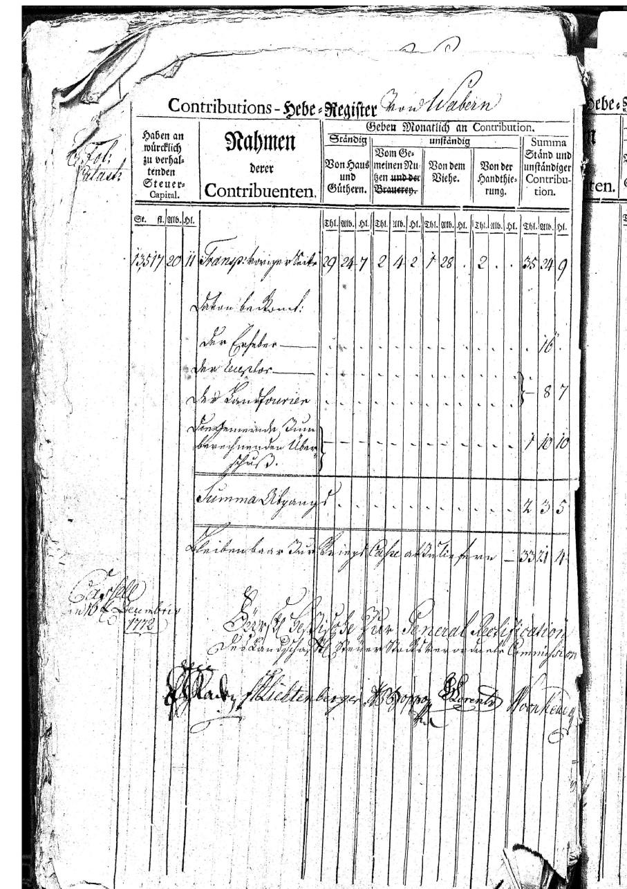 Ein Steuerregister von Wabern aus dem Jahr 1772