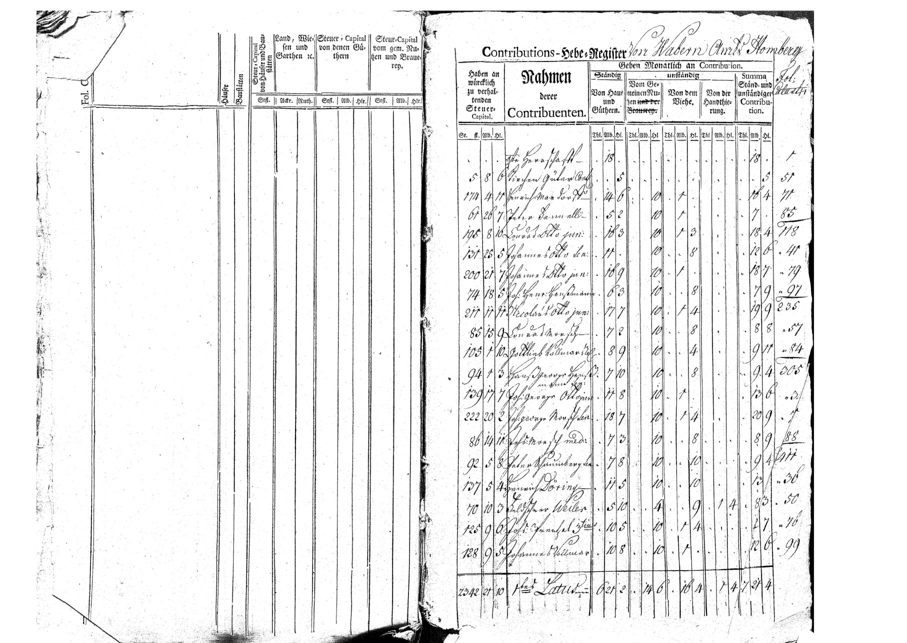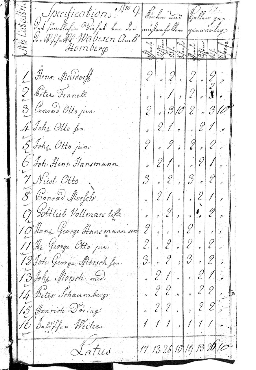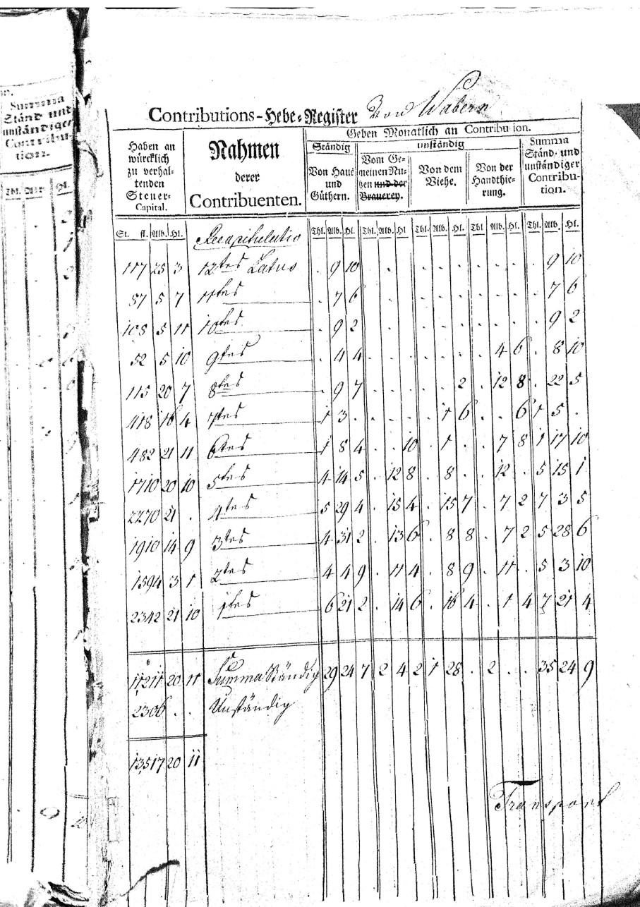 Ein Steuerregister von Wabern aus dem Jahr 1772